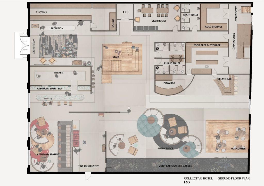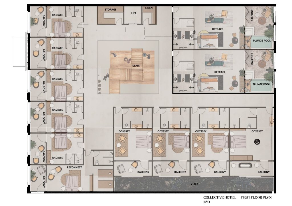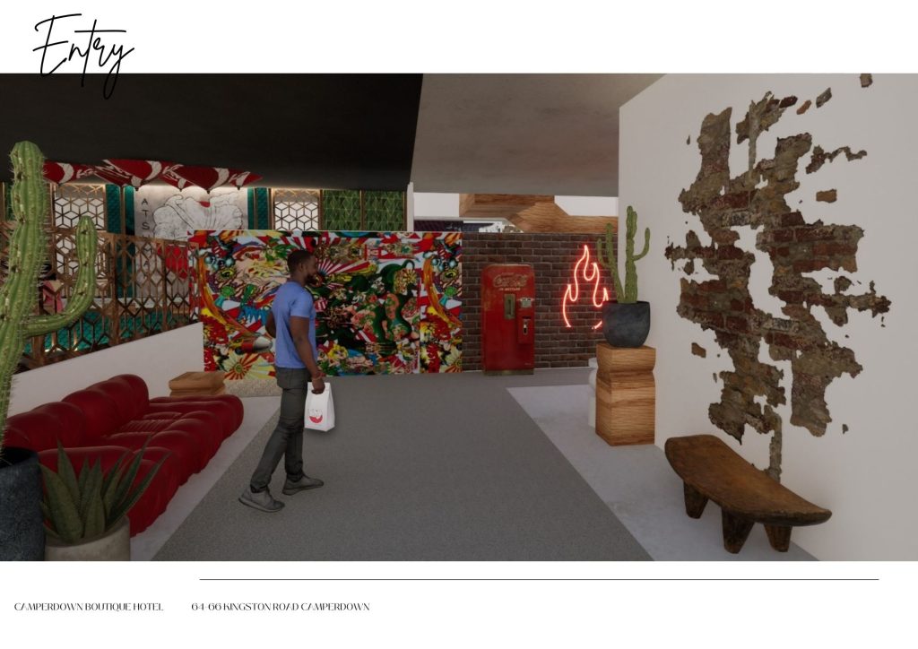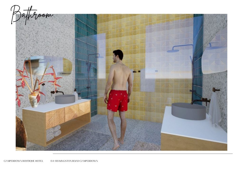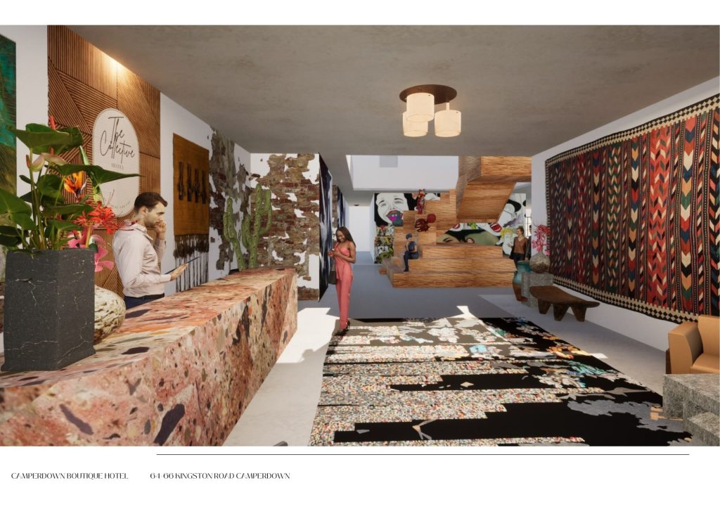 The Collective Hotels aesthetic is a mix of heritage and contemporary design using a neutral base layering and disrupting this with bursts of bright and bold colour creating intrigue and adventure. Celebrating texture and time along with the beauty in the transience of the ever evolving world we live in. Through the art selections and materiality Camperdown’s identity, street art, entertainment, diversity and acceptance is felt and communicated.