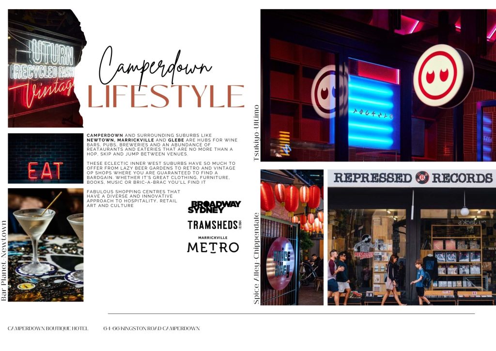 When creating the branding package for the Camperdown Boutique Hotel project, I wanted to encompass the essence of the area focusing on its history, and movement through time via human and natural interactions. Highlighting the eclectic mix of eateries, along with the innovative and diverse approach to immersive experiences in arts and culture. Creating a true sense of place where old meets new and past meets present.