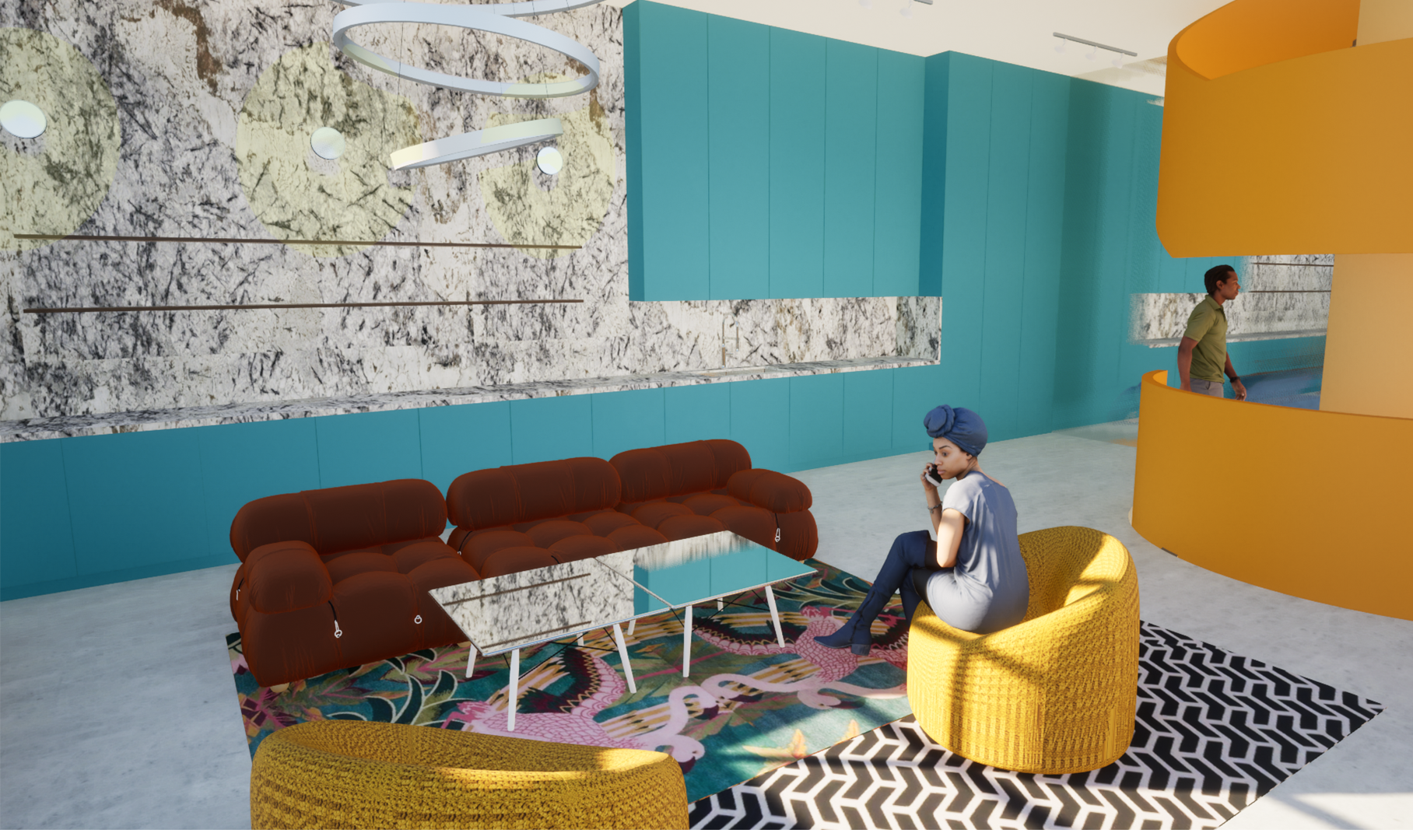 Client Steffi is a DJ and music producer who loves to entertain in her home (but hates cooking!). She has a cheeky humour, a love of art and colour and encapsulates the Unrestrained Joy concept.
